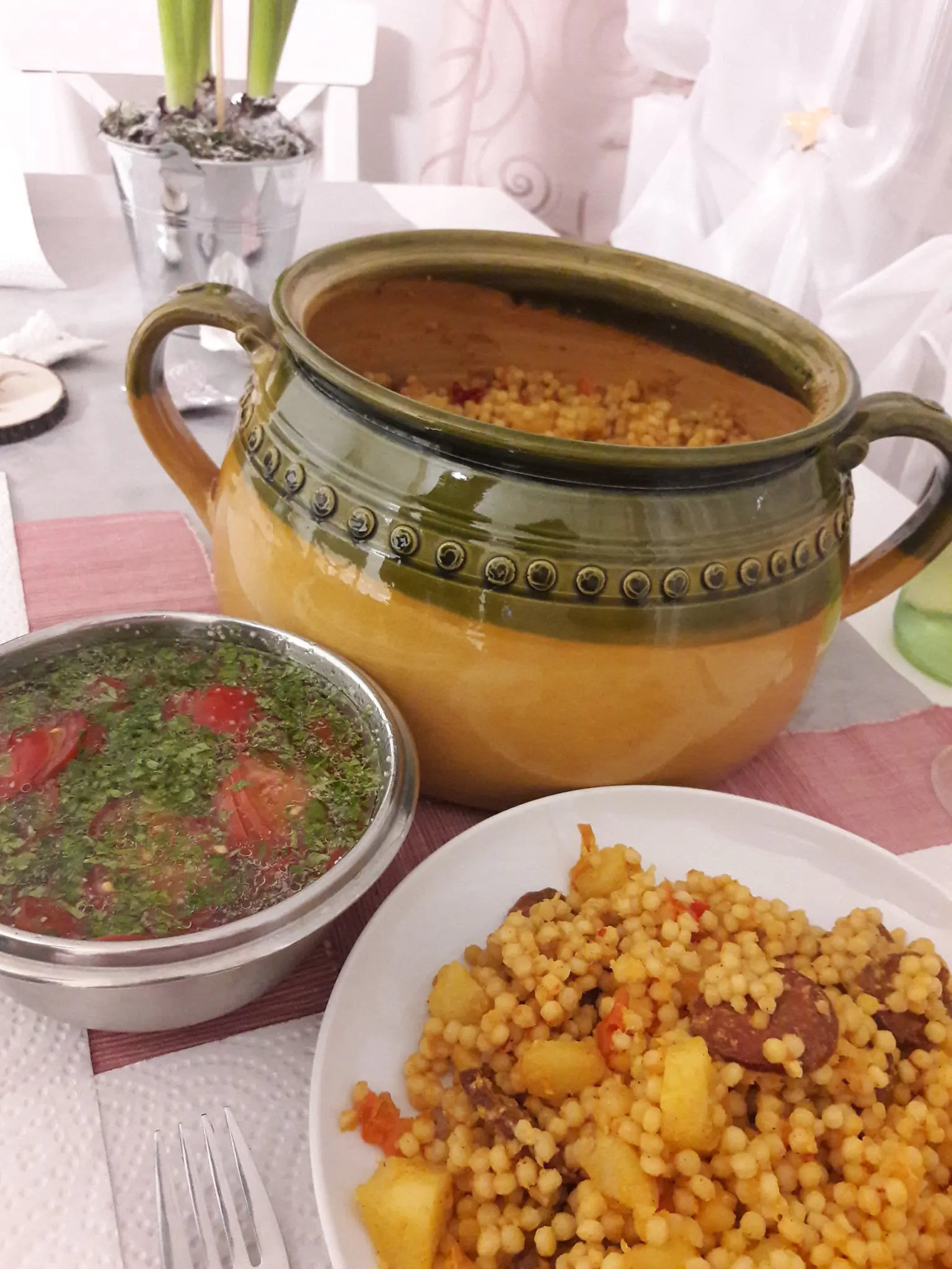 Kotlíka prikryjeme a na miernom ohni varíme ešte asi 25 minút, kým zemiaky zmäknú a tarhoňa nasiakne chuťami.