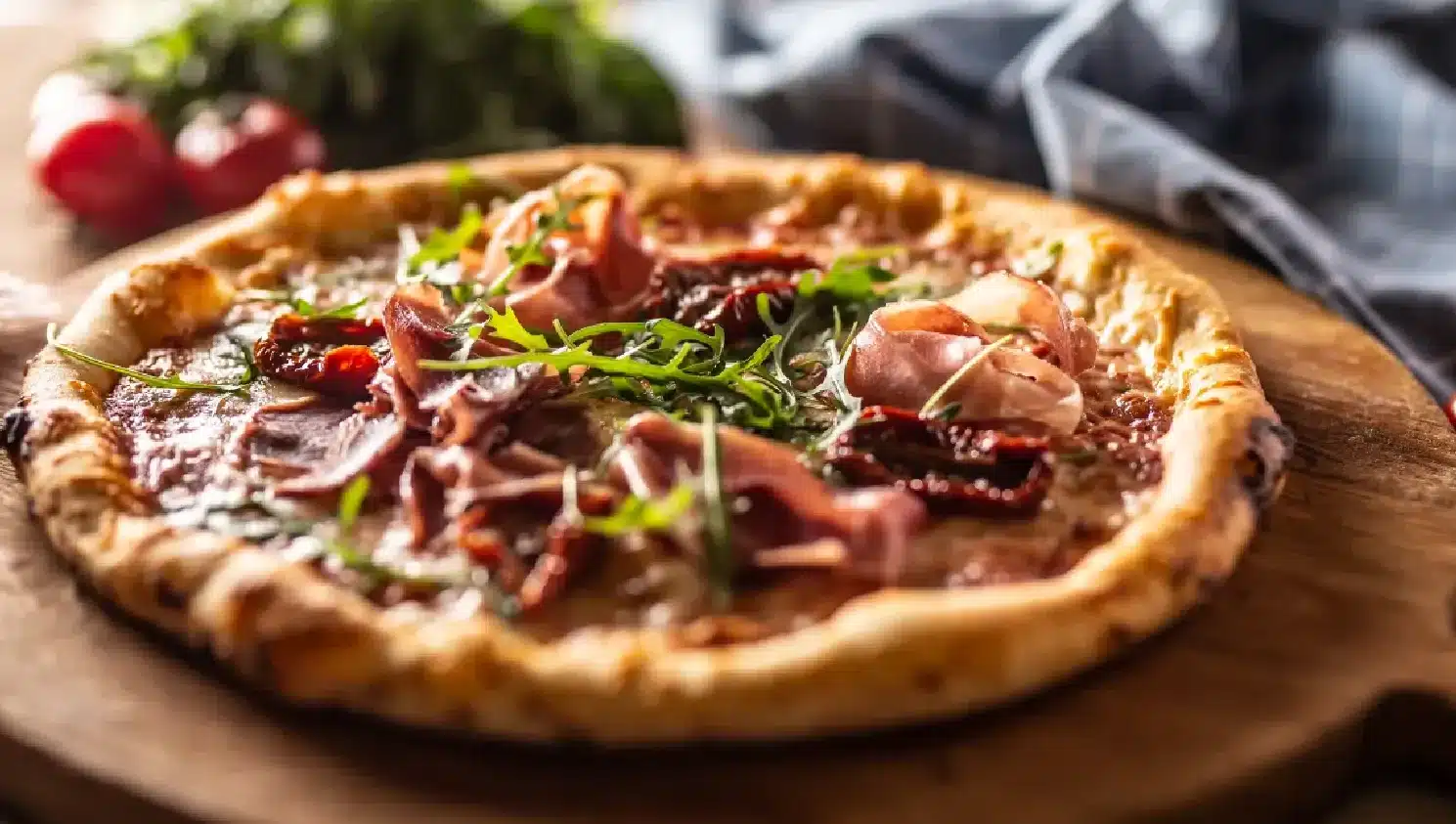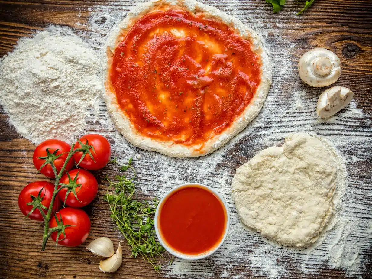 Cesto rozvaľkáme alebo roztiahneme rukami do tvaru pizze. Potrieme ho paradajkovou omáčkou a pridáme obľúbené suroviny.